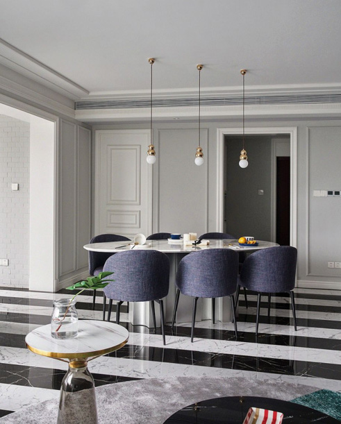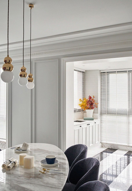 津色整屋木作系统是用石膏板和线条拼接,用乳胶漆打造的一种类护墙板的墙面系统,可以根据设计师的需求,设计不同风格墙面设计。高端大气档次高,凸显主人家高贵气质。