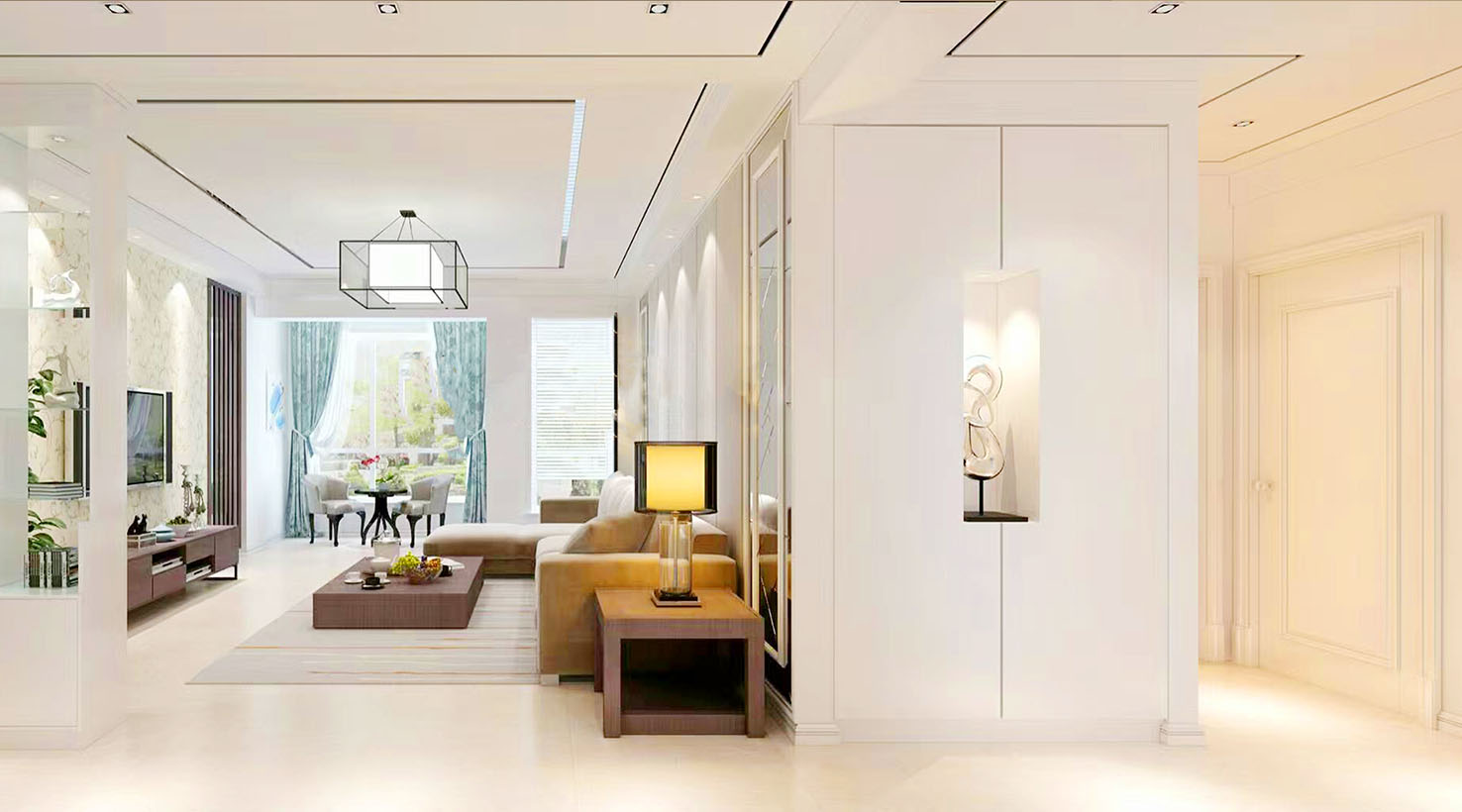 腰线、立体扣线、踢脚线、背景墙框线等定制化设计,造型简约,时尚美观
