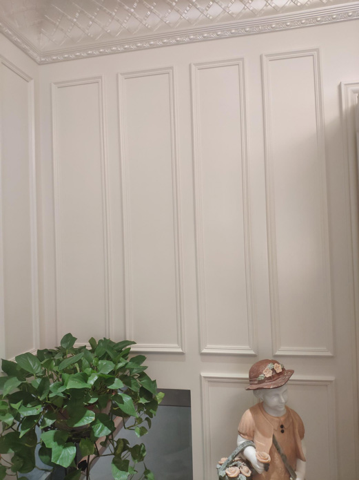 津色整屋木作系统是用石膏板和线条拼接,用乳胶漆打造的一种类护墙板的墙面系统,防水、防霉、防潮、防腐,耐用持久,保护墙面。