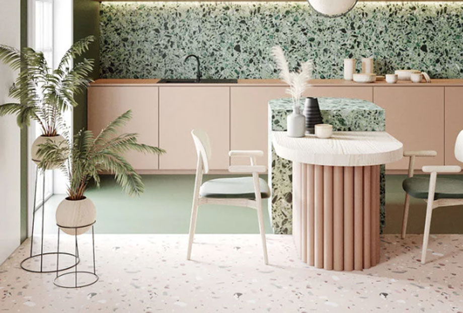 帮助打造室内外一体的芝麻石效果墙地一体。